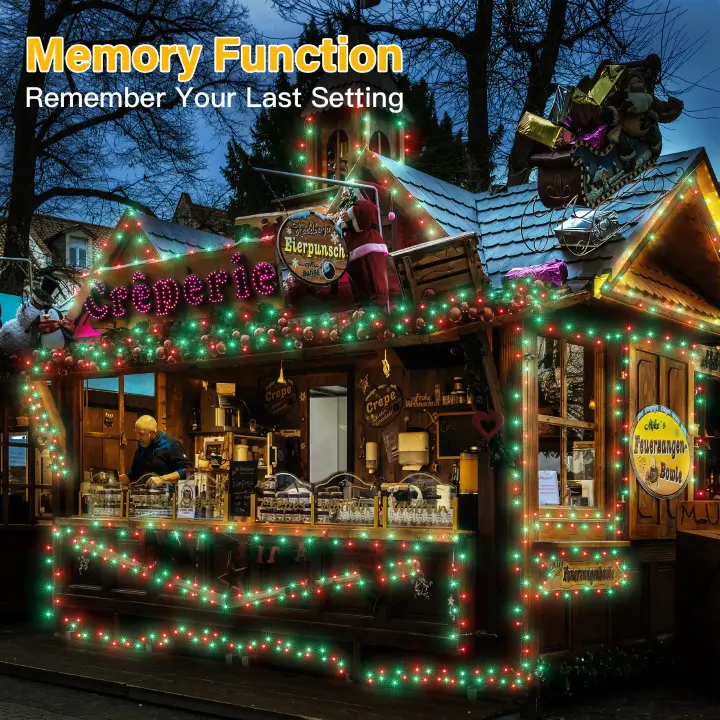 Our Christmas string lights have 8 lighting modes- combination, in waves, sequential, slogs, chasing/flash, slow fade, twinkle/flash, and steady on. Just pressing the round button on the transformer to change the lighting modes. Comes with memory function, will remember last setting automatically after cutting off the power, no need to reset again.