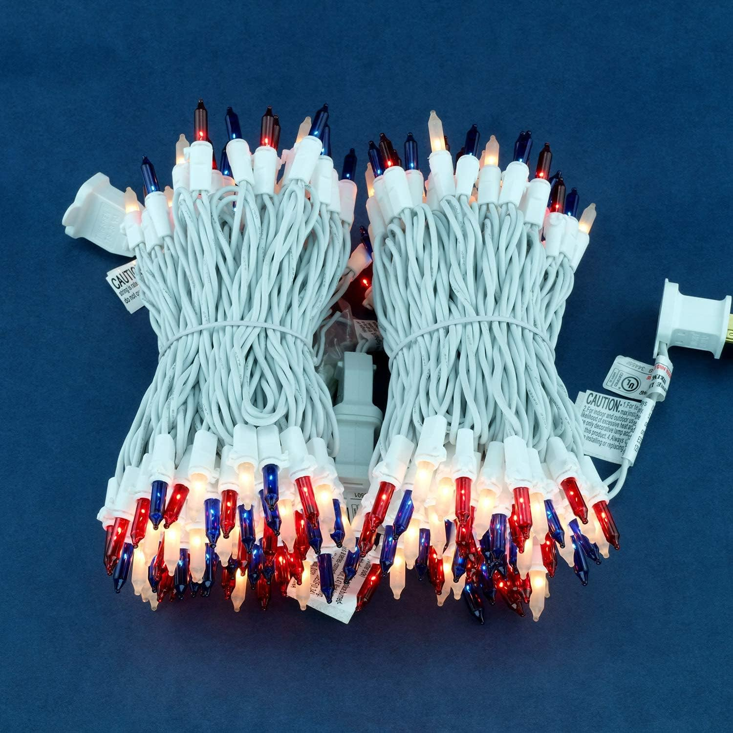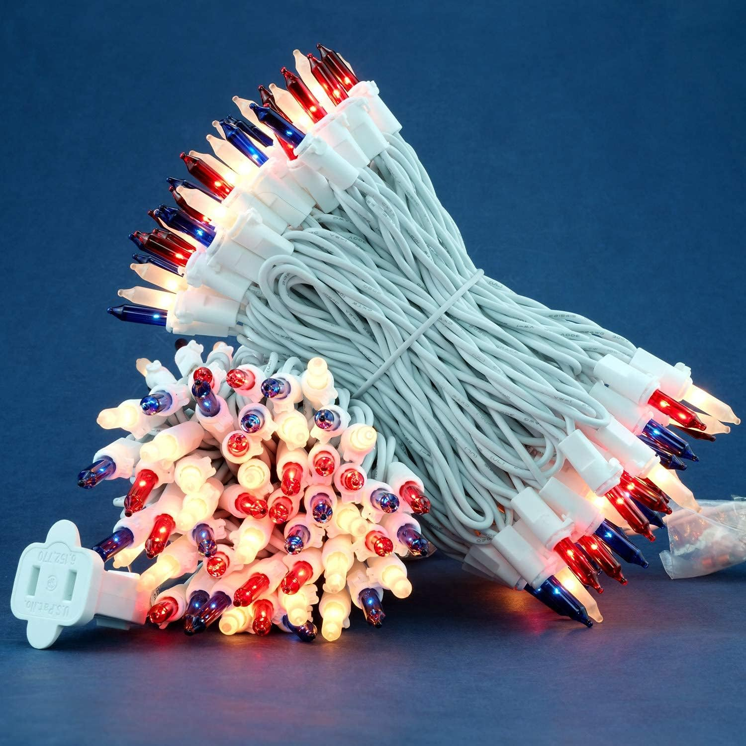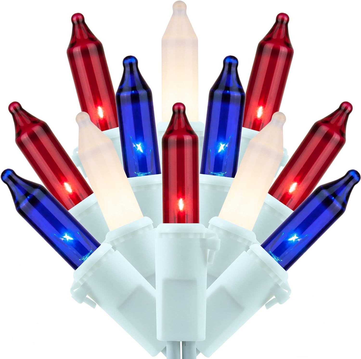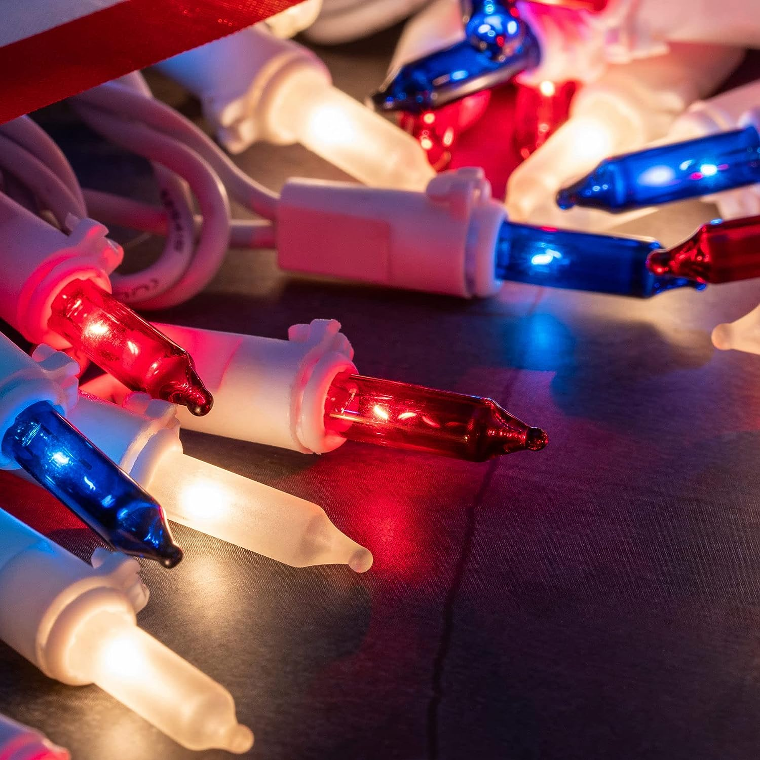 Red White and Blue Mini Lights, 4th of July Patriotic String Lights Green Wire,16FT 50 Leds Incandescent Independence Day Lights for Indoor Outdoor Christmas Party Decor