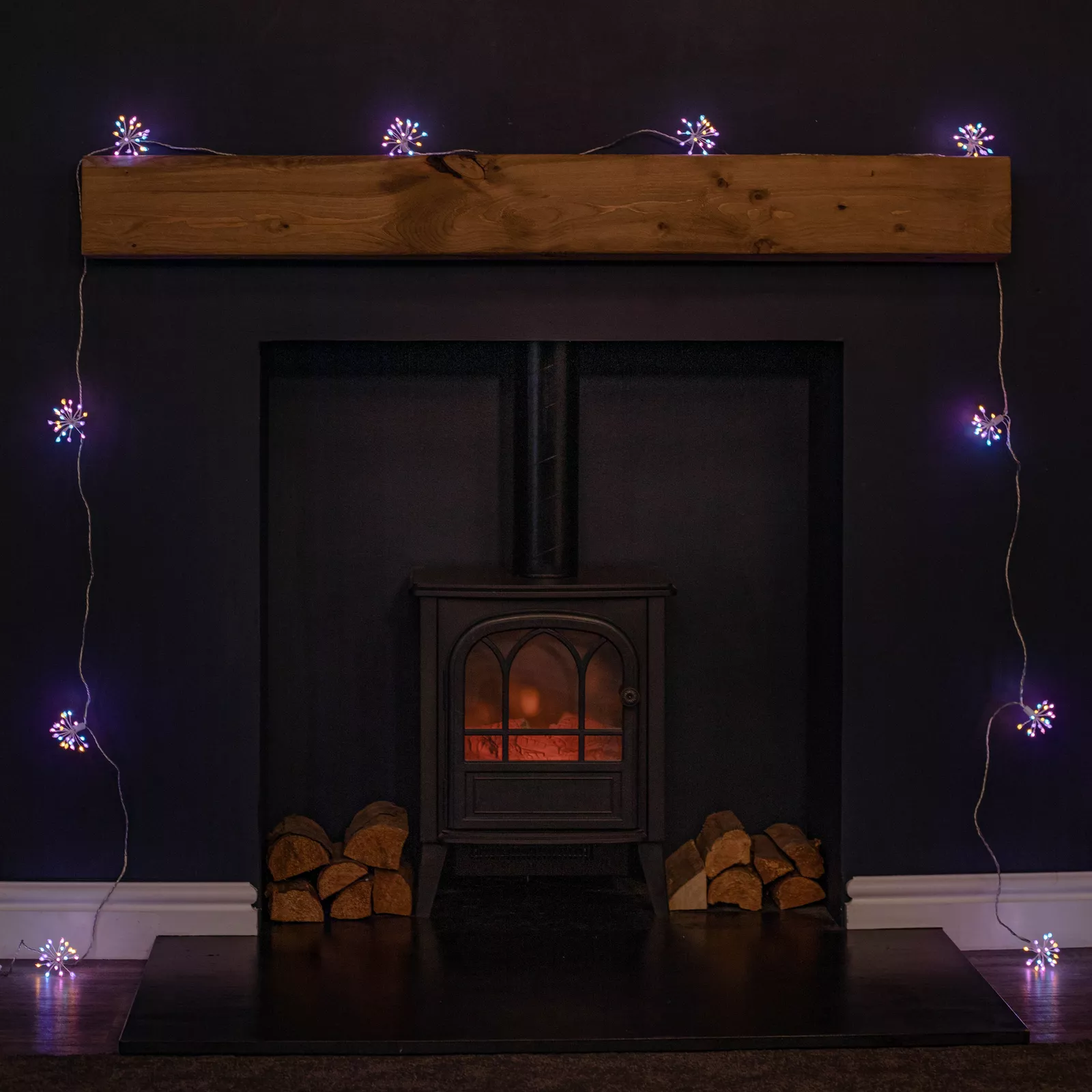 The USB-operated Starburst Chain Lights feature 100 warm white LEDs, a total length of 2m. With 10 ornament of 7cm diameter, these lights provide a mesmerizing display.